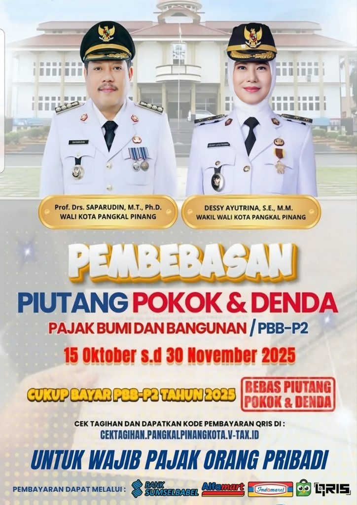 Pemerintah Kota Pangkalpinang memberikan PEMBEBASAN PIUTANG POKOK & DENDA Pajak Bumi dan Bangunan (PBB-P2) ✨